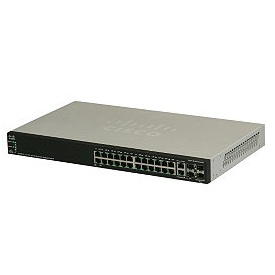 Cisco, Small Business 500 Series SF500-24-K9-NA Managed 10/100Mbps + 1000Mbps Stackable Ethernet Switch 24 port x 10/100 Mbps + 4 x Gigabit Ethernet 16K MAC Address Table 8MB Buffer Memory Managed